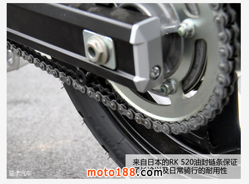 剎車方面全部來自日本企業,前剎車采用TOKICO雙活塞普通卡鉗,制動效果較為線性,剎車手柄手感很容易掌握。后剎車則來自NISSIN的單活塞卡鉗,制動力道與其他鈴木車設定雷同。