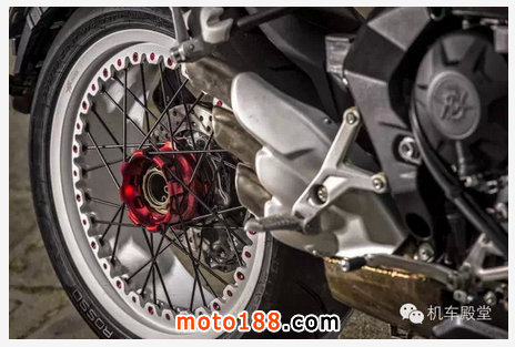 Brutale車款一直是MV Agusta街跑車系里最熱門的一款車,從原本的四缸引擎一直演進到三缸引擎,目前三缸引擎大多都配置愛800cc以下的中量級車型,而1000cc以上的重量級車型則采用四缸引擎,雖然RR版的車大多都是采用四缸引擎。不過這次三缸車系的 Brutale 800 Dragster 也推出RR版,輕巧靈活的三缸引擎也能發(fā)揮出140P的最大馬力,比起標準版多了15P的動力,扭力則為8.8kg-m,也因仿賽車款的設(shè)計讓RR版延生更強大的性能,RR版最亮眼的就屬Kino無內(nèi)胎設(shè)計鋼絲圈,再搭配黑色或白色陽極處理,手工制作讓RR版更加有質(zhì)感