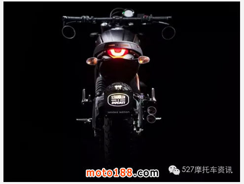 新款Scrambler以2015款Scrambler 的“Land of Joy”為設(shè)計主題,并受到20世紀70年代cafe racer的啟發(fā)設(shè)計而成。新車周身采用啞黑涂裝,內(nèi)斂沉穩(wěn);車架和輪圈則采用專為該車設(shè)計的 “Night Copper”(近似古銅色)顏色,這樣的搭配又為該車添幾分時尚韻味;另外,每一臺Scrambler都有一個采用激光蝕刻技術(shù)印刻的編號,代表該車的唯一性。動力方面,全新Scrambler搭載803c.c.水冷發(fā)動機,最大馬力75匹(8250轉(zhuǎn)),峰值扭矩68牛米(5750轉(zhuǎn))。