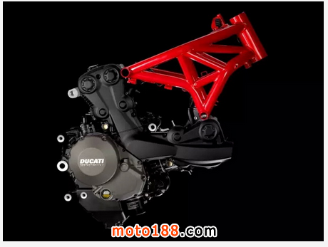 最初 Monster 理念中極為重要的部分得以延續,同時,新一代車架使用的是杜卡迪最先進的設計技術。Monster 標志性的 Trellis 鋼管編織式車架依然是重要的車型設計元素,其直接連接缸頭,類似于 Panigale 所開創的設計風格。較之以前的款式,新款簡潔的車架設計結合大口徑鋼管有效地將抗扭強度提高了兩倍。