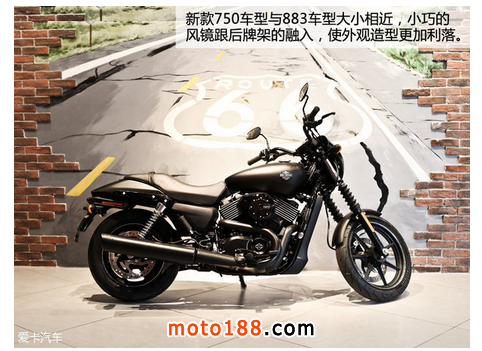 傳統的哈雷摩托車給人們的第一印象是重裝,而哈雷入門車型Street 750卻給人一種相對容易接近和輕松的感覺,它主打街道風格,不歸屬于Sportster、Dyna、Softail、V-Rod、Touring的任何一支。Street 750作為中量級巡航車卻擁有靈巧的操控和相對入門的售價,也深深的吸引了年輕人和女性消費者。
