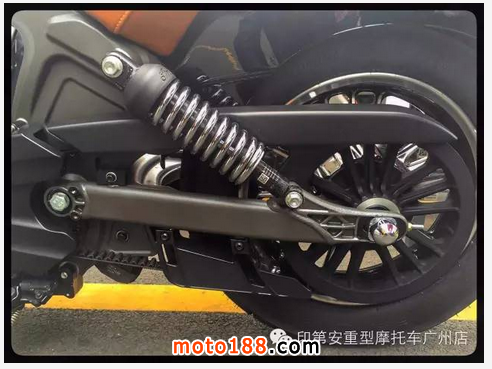 2016款Indian Scout前后輪轂依然使用了復古風格的設計但與15款輪轂對比16款輪轂則采用了電鍍輪轂邊,而前后泥瓦也保持了經典的造型與精髓;座墊與車身融為一體,讓傳統造型與現代工藝結合,三角形主車體構造,16款scout繼續取用韌性更強重量更輕的鋁合金車架,完美演繹了傳統造型與現代新工藝的完美結合。