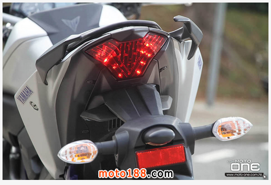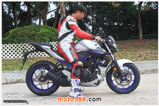 一直以來,所謂入門車的定義離不開車身纖巧、重量輕、易操控、易推車、小排氣、配置基 本裝備及經濟車價等等,MT-03也不例外,是一款新手也可迅速地享受駕駛樂趣的舒適型街車。只有780mm坐高,畢直座姿及纖巧車身,使大部份新手在任 何情況下停車都可雙腳著地,加倍駕駛信心。