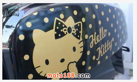 車身側邊以黑底圓點彩繪搭配大面積Kitty圖像,這要是騎在路上眾多妹妹都會多看一眼。