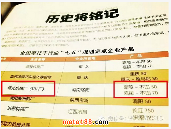 洛陽(yáng)嘉陵(洛嘉)的前身是國(guó)營(yíng)曙光機(jī)械廠(5111廠),當(dāng)時(shí)擔(dān)負(fù)著嘉陵—本田50及嘉陵—本田70型摩托車的生產(chǎn)任務(wù)。
