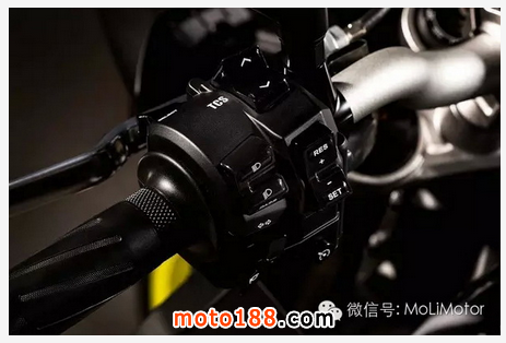除了動力上的調整外,電控系統也因為需求的不同而與R1 有所不同,除了最基本的電子油門YCC-T 與D-Mode動力模式外,具有與R1 不同的三段式TCS,Level 1 為介入最少的運動模式,Level3 則是適合雨天惡路使用,介入最多的模式,TCS 會透過控制節流閥、點火與供油,在后輪打滑時介入,當然也可以關閉。除此之外,MT-10 新增加了巡航控制,只要檔位在4、5、6檔,并且時速在50-180km/h 之間,開啟左把手的巡航開關,不論上下坡車輛都會維持同樣的速度,同時能透過開關增減時速,每次為兩公里。一但扭動油門或操作離合器、煞車,則會自動取消。另外也設有回復鍵,可以一鍵以上次巡航速度巡航。