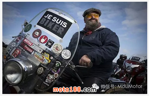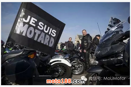 摩托車(chē)手騎摩托車(chē)穿過(guò)巴黎,許多人還帶著“我是摩托車(chē)手”(Je suis motard)的海報(bào)。