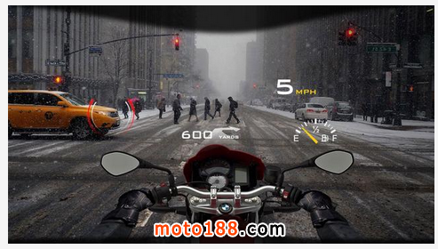 DigiLens設備依靠磁力將其與頭盔固定在一起,鏡片就在用戶眼前,可以實時提供信息更新,比如交通警示、燃料使用情況、速度和引擎功能。外部環境數據將會顯示在鏡片上,并以360度視角來展示摩托車周圍的交通和路況。