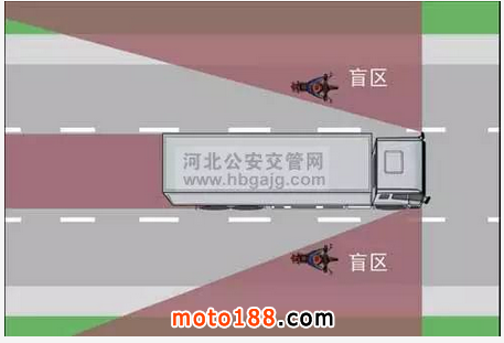 核心提示: 大型車輛要遠離,保持車距避盲區 摩托車在道路上行駛應盡可能避開大型車輛。大型車輛因高度和長度的關系,會在車輛周邊產生