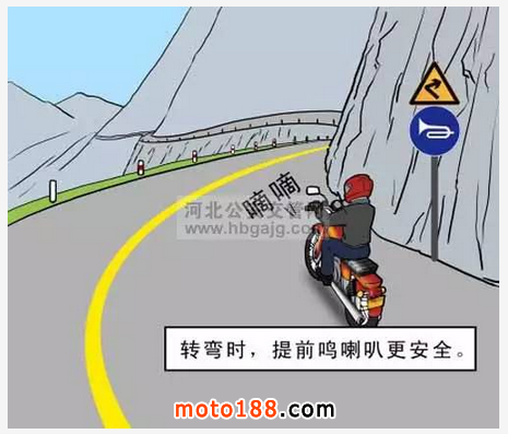 (1)行經橋梁時,應注意橫風的影響,要控制好車速,握緊轉向把,并與周邊車輛保持較大的橫向間距。行經隧道時,應提前開啟前照燈,并減速行駛,待眼睛適應光線的變化后再以正常速度行駛。