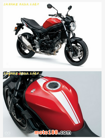 收窄的車身下是經典的鋼管編織車架,搭配大圓燈,帶有DUCATI MONSTER的風味。除了ABS系統外,SV650配有全新的全液晶儀表,SUZUKI輕松啟動系統( Easy Start輕按一下即可立即啟動車輛),較低的座高設定,讓身形嬌小的騎士也可輕松駕馭。