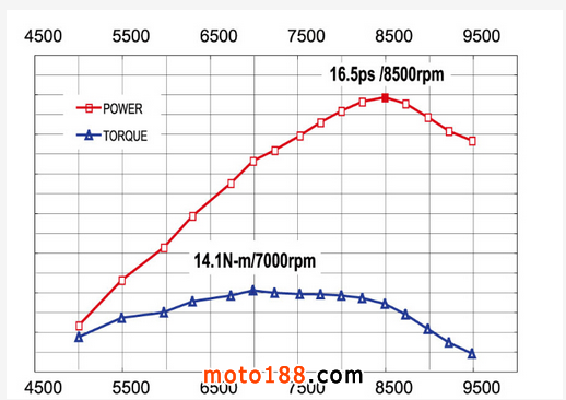 G-Max 150最重要的改動是引擎。以前是油冷機器,現在G-MAX 150已升級為水冷機器,并采用四閥門設計,馬力由以前11ps暴增至16.5ps,扭力也同步提升!水冷G-Max 150的操控快感直線上升,油門響應性和動態反應都更爽快。雖然水冷機器的重量便無可避免地增加,空車重由以前的124kg增加至138kg,但仍屬輕盈級別。為了應付增加的動力,尾制動碟直徑由200mm增大至220mm。