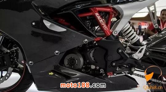 殺氣逼人的全碳纖維車殼,科技感十足液晶儀表以及倒立前叉,剎車鋼吼,阻尼鈦尺,防滑座椅,鏤空式尾翼,后中置減震等一系列超跑配置,盡管新車的具體參數尚未公布,但僅 從眼前所見部分,是否預示著又一臺為賽道而生的小鋼炮即將加入戰局?