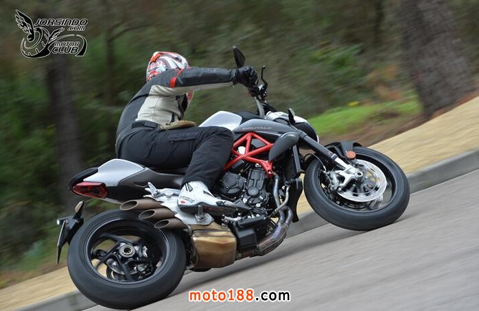 答案顯而易見!在Ronda山路上,大多是可以用100km/h左右的速度進出的彎道,照理說,軸距短的車輛在高速過彎的穩定性較差,但在New Brutale 800上,這樣的缺點卻不明顯,甚至有時我會懷疑這輛車的軸距是不是有官方聲稱的短,無論是高速或是低速彎,只要到了進彎點,完成煞車動作,啪!的一聲,車輛以平穩的姿態進出每個彎道。