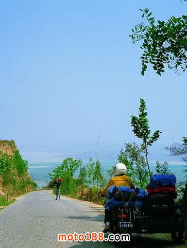 路上經過了很多高山,有些照片我掃描后補上,路上還遇到很多被沖壞的路,摩托車的通過性還是差,這樣的路它走起來很費力。