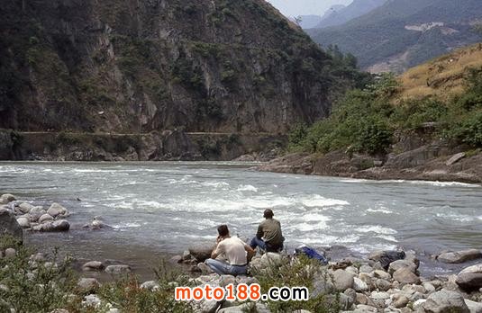 要通過最危險的路段大約有8公里,大部分是上坡,因為夜里下雨,路邊的山體很多都塌下來,這時摩托又不愿走了,我們仨人只好下來,掛一檔推著摩托車上山,一邊走一邊等著推土機把前邊路上的落石和土推開,我當時害怕的要命,特別希望立刻離開這段險路,當終于走過這段路的時候,我覺得自己就像重新活過一次,那份輕松和欣喜無法用語言來形容。
