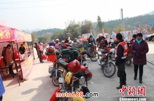 大批返城摩托車進入服務站休息。 陳展存 攝