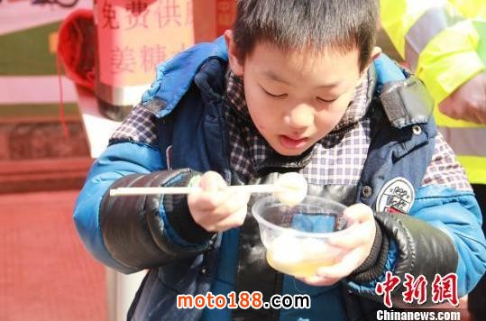 陶振宇在服務站吃湯圓。 劉慧嫻 攝