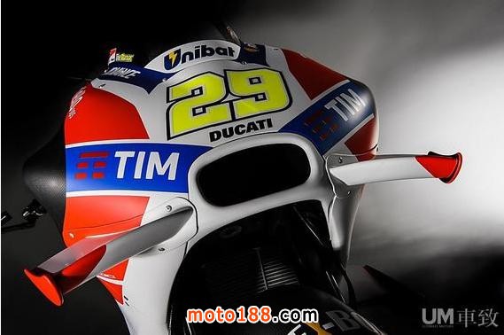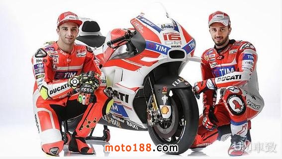 當地時間2月23日,MotoGP杜卡迪車隊發布了2016賽季全新戰車Desmo16 GP 。新車依然采用了紅、白、黑的顏色涂裝,而設計上最大的亮點在于車頭位置加裝了類似F1賽車上的擾流翼片,該翼片可以提供更強的下壓力,從而起到提升車速的目的,而這一點已經在2015賽季得到印證。2016賽季揭幕戰將于3月20日在卡塔爾的羅塞爾賽道打響,感興趣的車迷不要錯過喲。