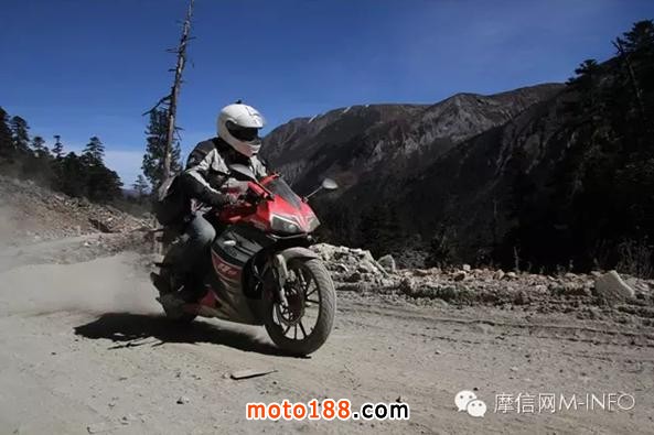 R9搭載250mL內置平衡軸亞光黑6擋油冷發動機,動力穩定強勁;發動機內置平衡軸,無感震動,駕乘更加舒適。制動系統采用前后雙活塞通風液壓盤剎,即剎即停;單后減+倒置前減的配置,各種路況皆能輕松應對。在川藏公路北線G317線上,R9猶如越野車附體。G317線百余公里的爛路上,尖石遍地,道路顛簸崎嶇,一路行過,泥塵滾滾、泥漿四濺,車輛行徑此地,完全是對其的終極測試。面對這樣復雜的路況,R9依舊游刃有余,其出色的性能展露無遺。