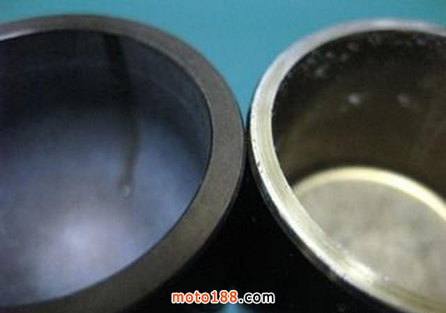 右邊是原廠活塞、深色的是鋁合金制活塞,雖然材質(zhì)與原廠活塞不同,但活塞直徑和高度都是一樣的。