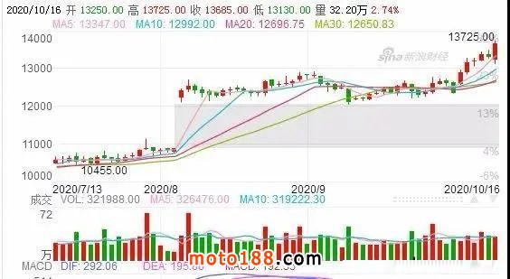 天然橡膠價格從4月的9564元/噸漲到10月的13298元/噸,漲幅高達(dá)3734元/噸,漲幅已經(jīng)超過28%。10月16日開盤價13250元/噸,收盤價13685元/噸,天然橡膠價格持續(xù)走高。