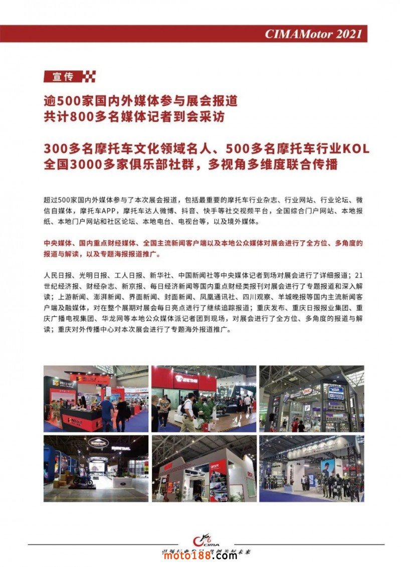 圍繞展會各大主題活動,邀請歷屆CIMA騎士、參與騎士評選的摩托車行業KOL及全國超過3000多家摩托車俱樂部深度參與展會各項活動,以個人視角在各大短視頻平臺、社群,多維度地正向傳遞展會各項信息,共建中國摩托車文化氛圍,形成圈層傳播聚合效應。
