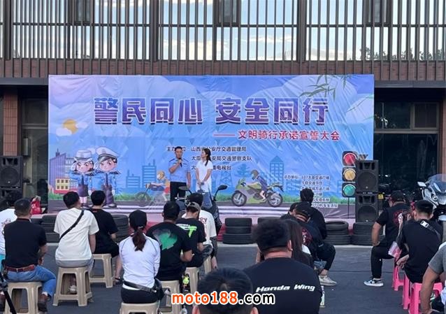 為有效遏制市區道路存在的飆車炸街違法行為,進一步凈化道路交通秩序,維護道路交通安全,太原市公安局交警支隊聯合太原廣播電視臺交通事業部,于2023年7月14日開展以“讓安全先行,爭做文明騎士”為主題的騎手承諾宣誓大會,號召廣大摩托車騎士摒棄交通陋習,與平安同行。