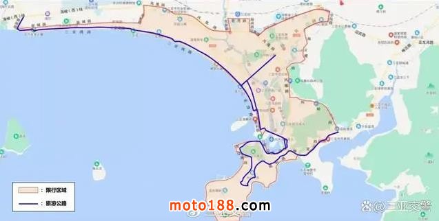二、現(xiàn)解除環(huán)島旅游公路三亞段(主城區(qū)路段)摩托車(即燃油二輪摩托車、三輪摩托車)限行區(qū)域。
