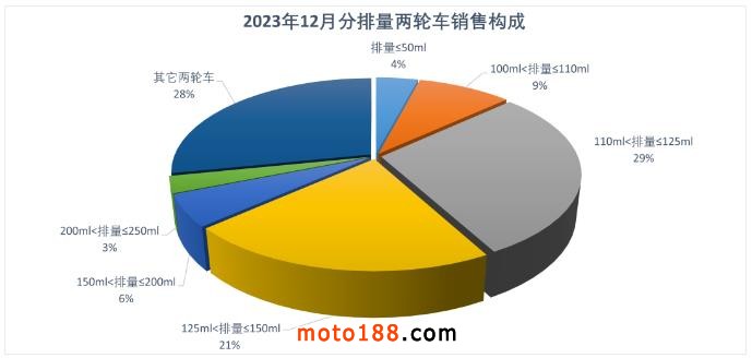 1-12月,50系列產(chǎn)銷66.18萬輛和67.66萬輛,同比增長21.52%和15.92%;110系列產(chǎn)銷150.52萬輛和151.01萬輛,產(chǎn)量同比增長2.41%,銷量同比下降0.69%;125系列產(chǎn)銷482.41萬輛和479.48萬輛,同比下降1.62%和2.82%;150系列產(chǎn)銷354.8萬輛和354.59萬輛,同比增長18.05%和17.64%;200系列產(chǎn)銷89.7萬輛和91.12萬輛,產(chǎn)銷量同比增長6.43%和5.75%;250系列產(chǎn)銷47.17萬輛和47.68萬輛,產(chǎn)銷量同比下降4.94%和2.94%。250cc以上大排量摩托車(不含250cc)產(chǎn)銷51.18萬輛和52.54萬輛,同比下降7.13%和5.06%。