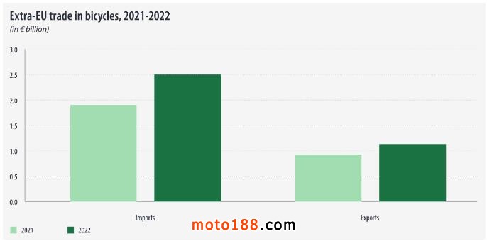 根據中國海關數據顯示,2023年1-10月中國自行車出口數量為3332萬輛,出口金額為21.99億美元,其中電動自行車2022年出口總量為1616.61萬臺,出口總額達到53.36億美元。