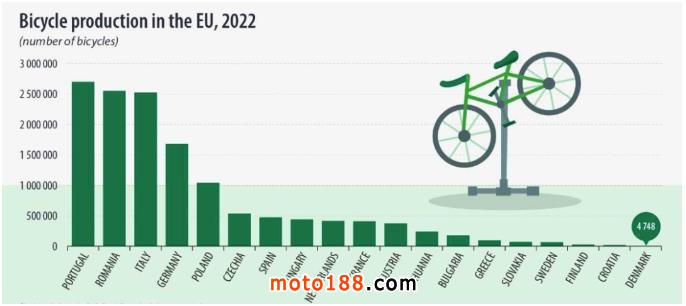 歐洲開始鼓勵本土自行車產業發展,并吸引外在生產回流,此外,歐洲對自行車的進口設立了更高的壁壘,同時增強了自產自銷的能力。葡萄牙、羅馬尼亞和意大利等國自行車生產規模增長,近年歐盟自行車產量一直保持 10% 以上的增長速度,2021 年,歐盟共生產了 1350 萬輛自行車,較 2020 年增長 11%,將時間拉長至 2012 年到 2022 年,這十年間歐盟自行車產量增長了 29%,近三年增長極快。