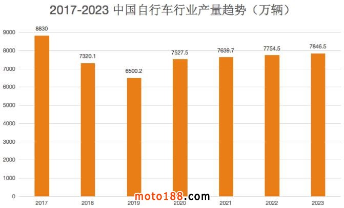 根據中國自行車協會數據,2021年中國自行車產量為7639.70萬輛,同比增長1.5%,未來我國自行車行業將保持穩步發展態勢,預計2023年中國自行車產量將達7846.5萬輛。