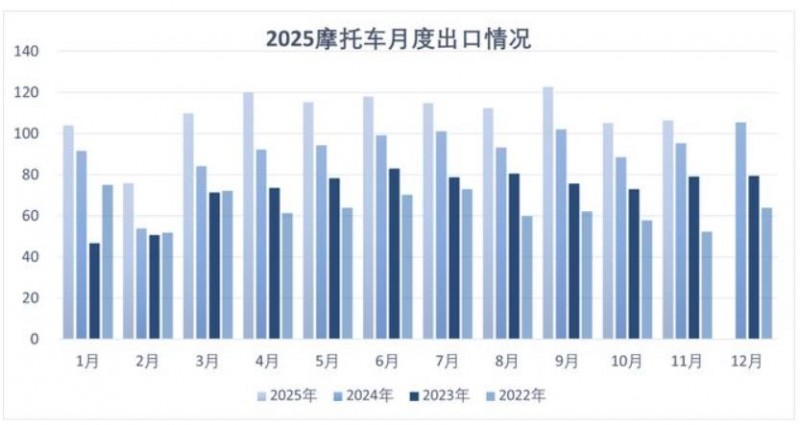 1-11月,摩托車生產企業產品出口總額99.17億美元,同比增長25.21%。整車出口量1208.23萬輛,同比增長21.27%,出口金額79.93億美元,同比增長27.26%。摩托車發動機出口121.69萬臺,同比增長17.3%,出口金額2.44億美元,同比增長11.8%。沙灘車出口43.35萬輛,同比下降1.51%,出口金額12.77億美元,同比增長20.02%。摩托車零部件出口金額4.02億美元,同比增長12.93%。