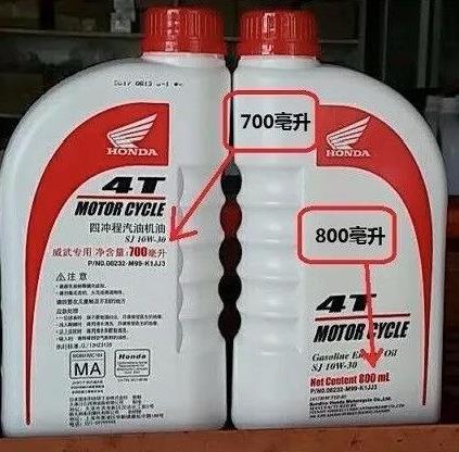 現在的摩托車機油量都不同,同是125排量的摩托車,有加900ml機油的,有加800ml的,有加700ml的,還有加550ml的。但市面上的摩托車機油包裝大多數都是1L裝的,如果你全加進去,就是加多了,容易導致車輛無力,油耗增加,曲軸油封漏油等故障。