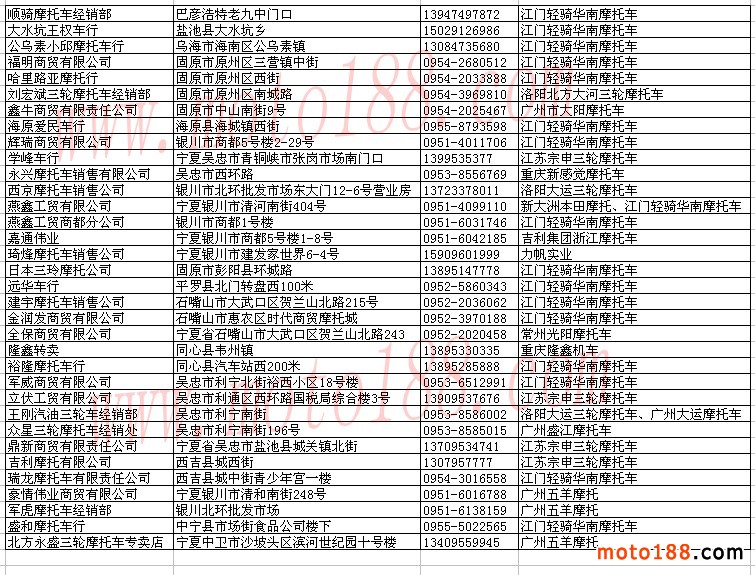 寧夏摩托車經銷商