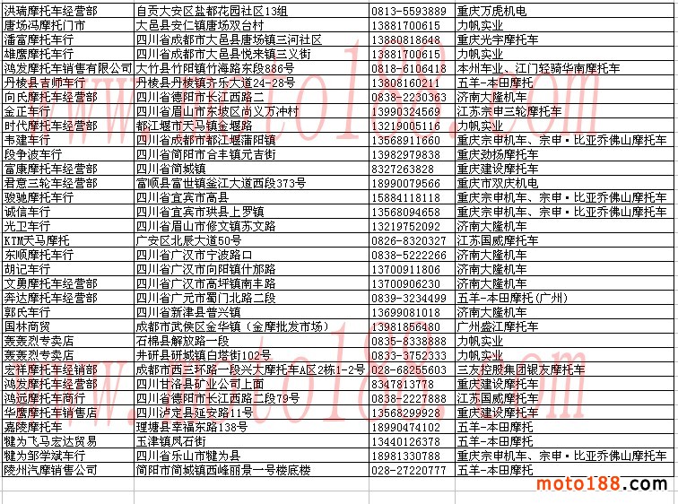 四川省摩托車經(jīng)銷商