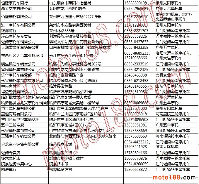 山東省摩托車整車經(jīng)銷商名錄
