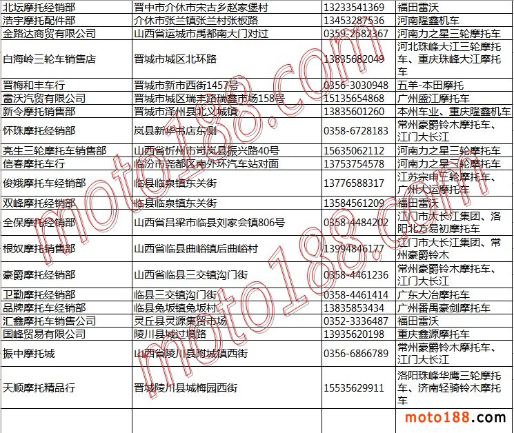 山西省摩托車整車經銷商名錄