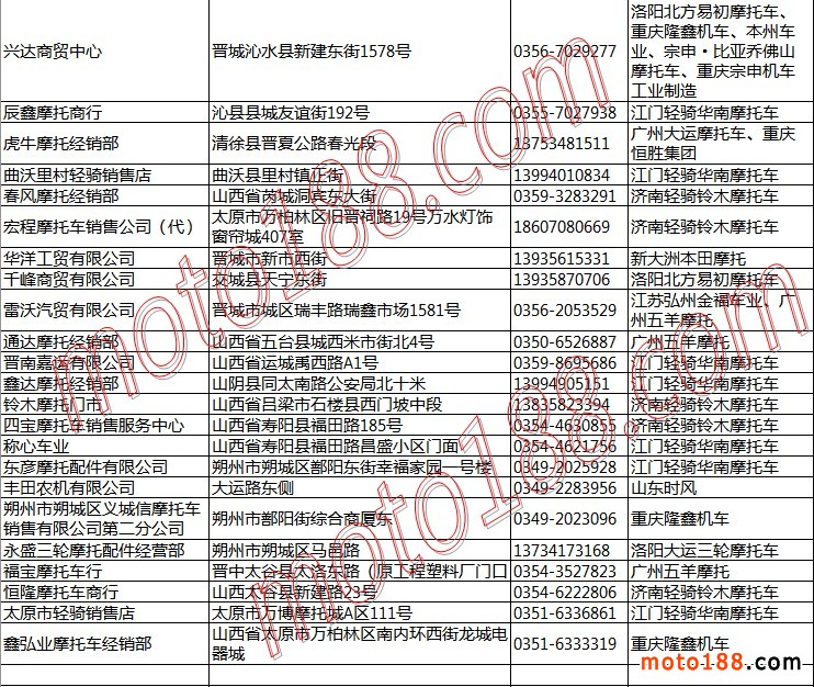 山西省摩托車整車經銷商名錄