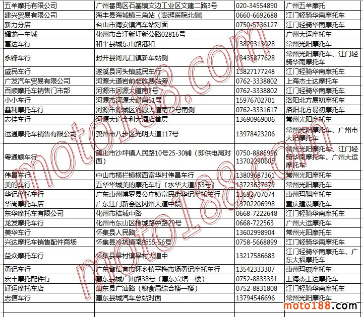廣東省摩托車整車經(jīng)銷商名錄