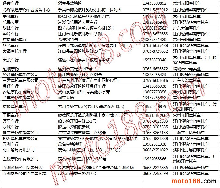 廣東省摩托車(chē)整車(chē)經(jīng)銷(xiāo)商名錄
