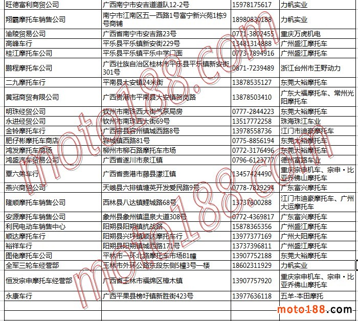 廣西省摩托車整車經銷商