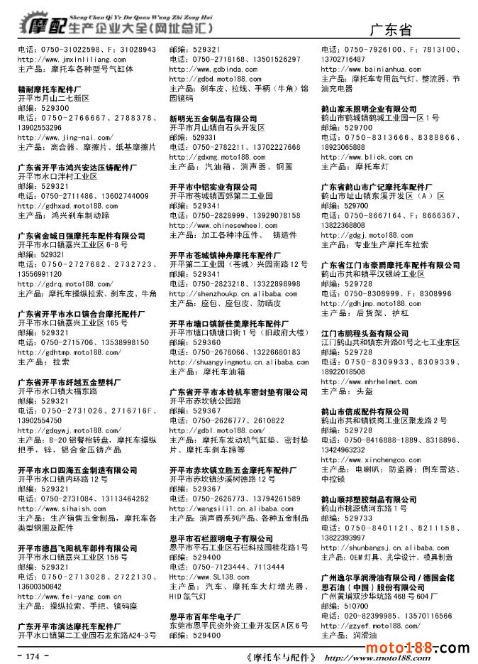 《摩托車與配件生產企業大全》打造行業信息的航母