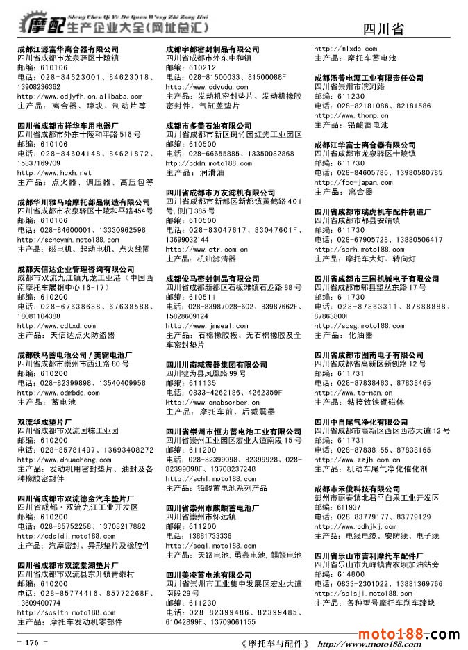《摩托車與配件生產(chǎn)企業(yè)大全》打造行業(yè)信息的航母