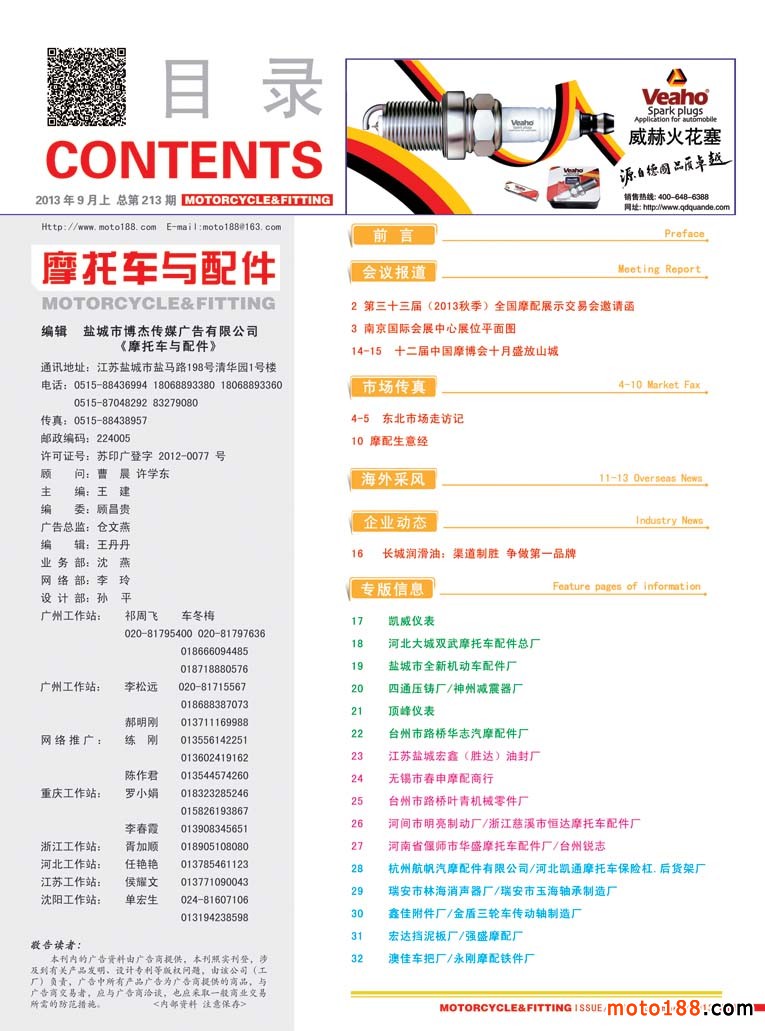 目前秋老虎終于收起了淫威,大部分地區(qū)氣候也慢慢地恢復(fù)到常態(tài),我們行業(yè)銷售的季節(jié)也開始了。我們雜志也從這個(gè)月開始出雙刊即半月一刊,由于是雙期,這一期的雜志相對(duì)較薄。完成全國(guó)摩配會(huì)議后,雜志還將根據(jù)行業(yè)具體情況作調(diào)整。受大環(huán)境的影響,尤其是國(guó)外市場(chǎng)的影響,今年的外貿(mào)形勢(shì)較去年相比形勢(shì)要差一些,在華南的外貿(mào)窗口也有所反映。從我們走訪的市場(chǎng)來看,盡管內(nèi)銷不旺,我們的北方市場(chǎng)(西北、華北和東北)在疲軟之中發(fā)展,至少?gòu)耐庥^上來說,不少市場(chǎng)面貌比以往有新的變化,這是市場(chǎng)的亮點(diǎn)。行業(yè)的冬季是這樣,那行業(yè)的春天會(huì)怎么樣呢?今年的秋季全國(guó)摩配展示交易會(huì)將在十月下旬南京召開,從會(huì)展的招展形勢(shì)來看,行業(yè)依然踴躍參與,包括明年春天在西安的全國(guó)摩配會(huì)議。從這么多企業(yè)的參與來看,行業(yè)同仁依然有一種精神在支持他們,不管市場(chǎng)的風(fēng)風(fēng)雨雨,我自巋然不動(dòng)。