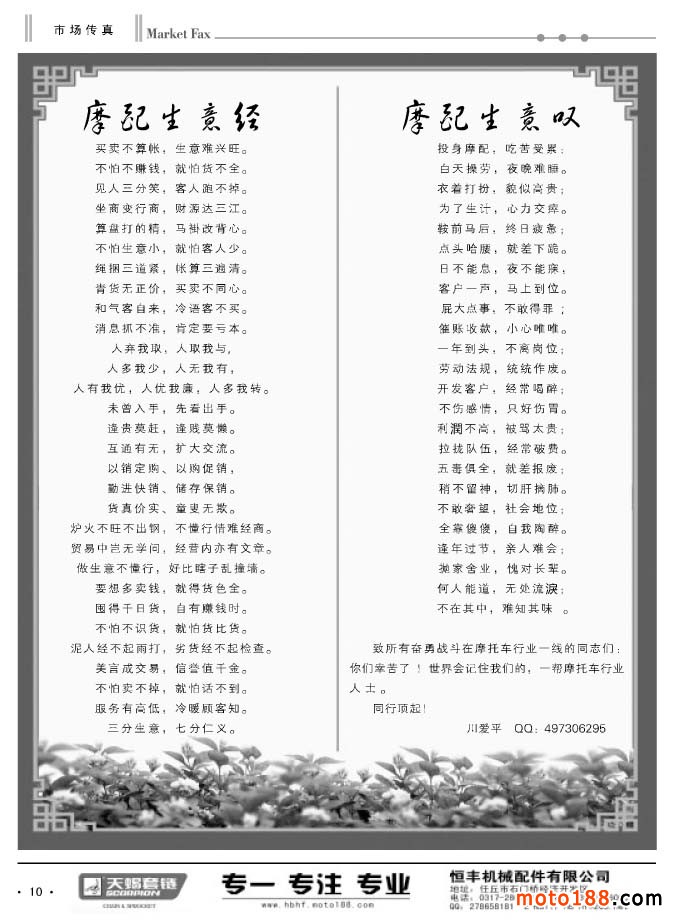 在今年水深火熱的夏天里,我們雜志社完成了《華東市場指南》的信息采集、核對、校正、編排。目前此書正在進行后期的廣告征集,大約再過一個月左右,廣告征集工作也將完成,在下個月就要印刷出書。這本書在采集市場信息時,我們的心情是比較沉重的,因為這是全國調整幅度最大的市場,不少企業搬遷甚至消失;依然存在的市場也今非昔比,但是在核對資料時,有不少原在市場內消失的企業又被我們從角角落落里挖了出來。一些企業搬出市場不是在退而是在進,為降低租金成本,他們以倉儲的形式在倉庫里銷售,為了開展銷售,他們采用大蓬車形式,送貨下鄉。有的銷售規模不光沒縮小,甚至還在逆勢增長,不管市場怎么變化,我們這些企業見招拆招,化解為無形,不能不佩服他們的適應和變化能力。高貴者最愚蠢“專家”們的行為已經被驗證,卑賤者最聰明,也被驗證,一如我們行業。這本《華東市場指南》我們不光從市場第一線采集,也有我們參與行業活動時不斷的收集,同時我們還得到中汽全摩會組委會的支持,他們把這幾年來,歷次在會議上收集的資料提供給我們核實參考,在此我們感謝組委會的大力支持,使這本書更具權威、準確及完整。通過編排后,較三年前的版本,市場資料變化雖然較大,數量也有一定幅度減少;但省內各經銷商的資料在增加,這次一減一增的版本,并沒有比上一次版本減少。就是說經過三年的市場調整,我們從事摩配經營的企業依然屹立在風雨之中,比我們之前匯總的數據要樂觀得多。當然我們這次信息來源也比以前更廣泛一些,涵蓋性更大。這本書在十月南京會議上首發,希望大家帶好名片去我們C89號展位領取。這本書的廣告征集工作還剩最后一個月,需要在此書宣傳的企業盡快和我們編輯部及各工作站聯系。這是通向華東市場的橋梁,也是開啟華東市場大門的鑰匙,時不我待,芝麻開門吧!