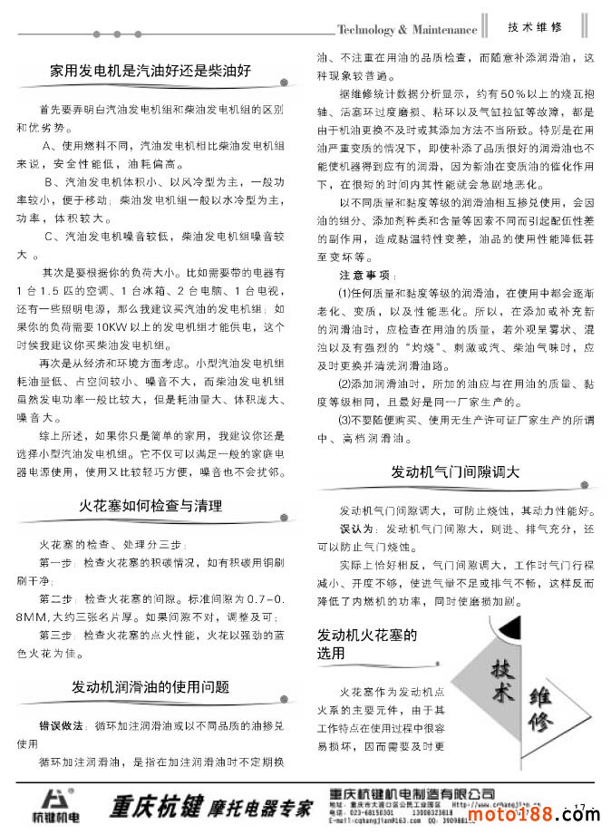 本期《摩托車與配件》雜志為小型汽油機專輯,這似乎與摩托車配件不太相關,但我們還是用心地去組織了與通機行業有關的技術、標準及資訊類的文章。我們編纂這個專輯也是有以下各方面的原因: