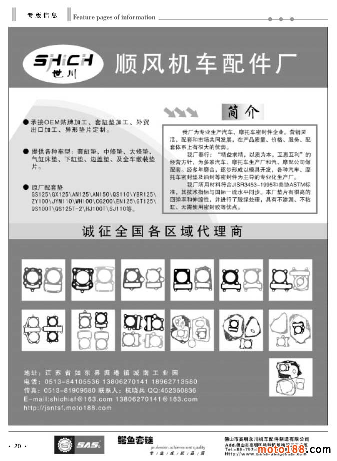 回想這幾年市場的變化,摩托車及配件制造業(yè)從造摩托車到部分轉(zhuǎn)為造電動車。這二年農(nóng)用三輪摩托車的需求量較大,很快一部分企業(yè)轉(zhuǎn)產(chǎn)三輪車及配件。在通機行業(yè),重慶國營和民營,尤其是民營企業(yè)發(fā)展神速,有的企業(yè)年產(chǎn)量達1-2百萬臺,而且還是以歐美等發(fā)達國家市場為主。這讓我們不得不佩服這些企業(yè)雖然在市場邊緣中生存,卻還做得風生水起。與通機制造業(yè)蒸蒸日上形成反差,通機國內(nèi)市場才剛剛發(fā)育。我們利用去全國市場的機會,也順帶去了一下機電五金等市場。目前在全國還沒有形成完整成形的專業(yè)銷售市場,通機部件更是沒成氣候。這為我們摩配市場經(jīng)營,注入了新的經(jīng)營項目,豐富了摩配市場的內(nèi)涵,這是一個新的藍海。這幾年摩托車配件經(jīng)營利潤越來越薄,市場越來越殘酷,我們向行業(yè)提供這樣的信息,希望給企業(yè)能有所啟迪,在市場的邊緣開拓市場、發(fā)展市場、完善市場。通過這一期的嘗試,我們試水通機市場,以后我們會更加關(guān)注這個市場的變化,如能形成一定的國內(nèi)市場,我們將完善我們的服務形式,用傳統(tǒng)紙媒和網(wǎng)媒來服務于這個市場。