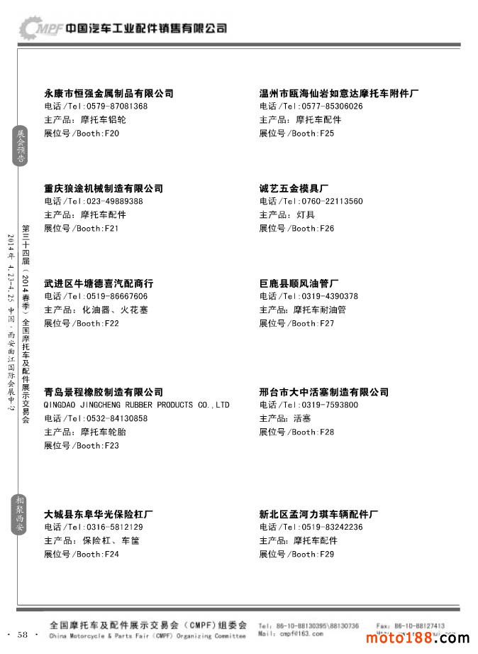 第33屆秋季(南京)全國摩托車及配件展示交易會參展企業名錄